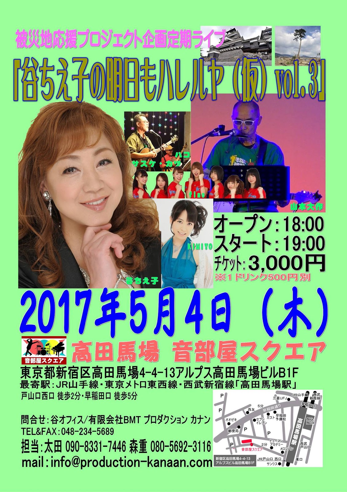 すでにご存知かと思いますが、本日第三回「被災地応援プロジェクト企画定期ライブ」が開催されます。